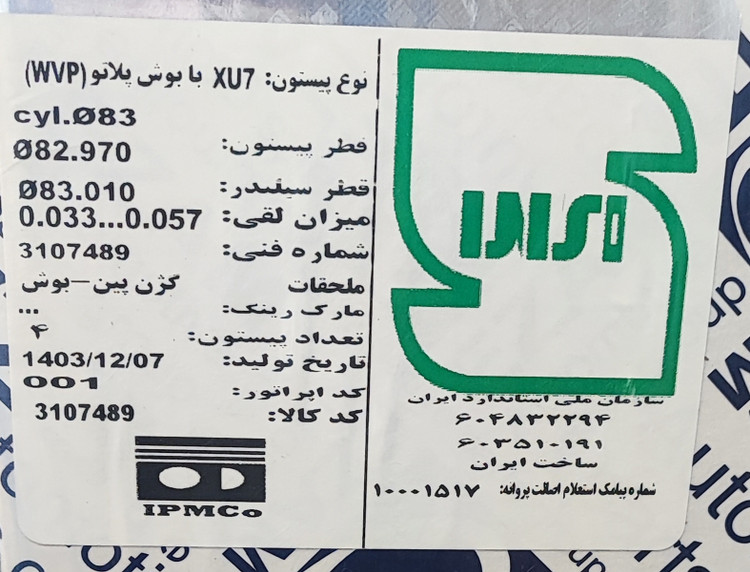 پیستون کامل XU7 با بوش پلاتو (WVP) عظام